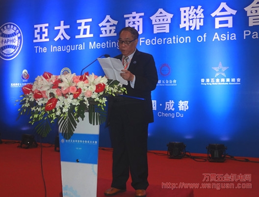 9月26日下午16:30,亚太五金商会联合会成立大会在成都金牛宾馆西苑厅正式召开。中国五金交电化工商业协会理事长朱仁和、中华全国工商业联合会五金机电商会负责人劳健斌、亚太五金商会联合会名誉主席吴石川、亚太五金商会联合会名誉主席拿督谢国培、中华全国工商业联合会五金机电商会副会长陈清华、菲律宾铁商公会执行副理事长许自月、马来西亚五金机械建材总商会总会长拿督林权兴、台湾五金商业同业公会联合会理事长陈森茂、台湾手工具工业同业公会理事长林建国、香港五金商业总会理事长黎显辉、新加坡五金机械公会会长柯建强等亚太地区五金机电商协会领导、嘉宾近200余人出席大会。
