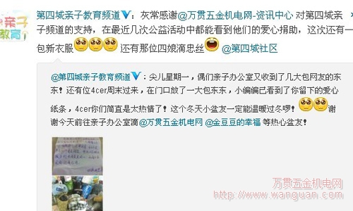 活动发起方“第四城”感谢万贯网络公司的爱心捐助