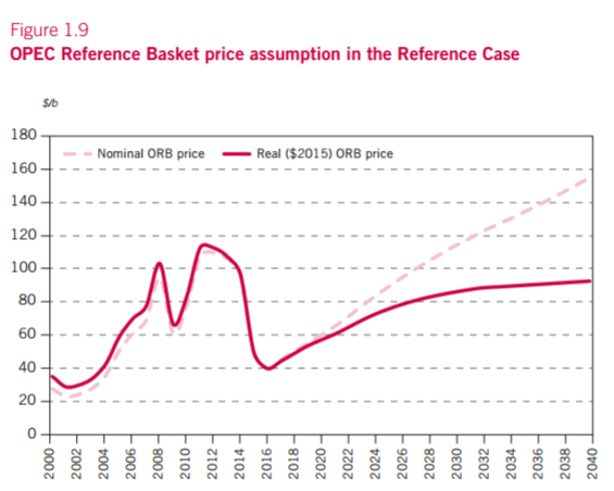 在最新发布的《世界石油展望》中,OPEC指出,到2020年,每桶OPEC一篮子原油(ORB)的名义均价将达到60美元/桶,这一预测与2015年相比下调了20美元/桶。此外,今年的ORB名义均价为40美元/桶,中期内将上涨5美元/桶。OPEC强调,这些数字并非预测,也不是OPEC期望的价格路径,仅仅是一个工作假设。