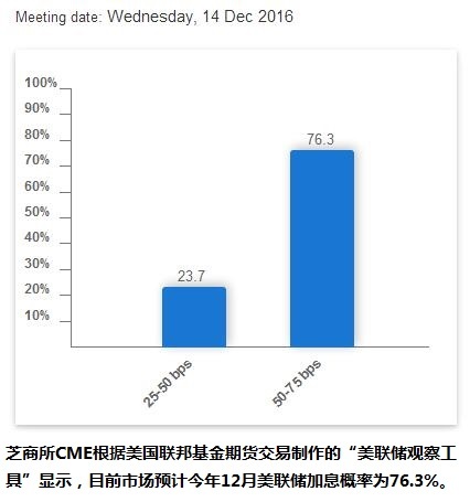 芝加哥商业交易所(CME)根据美国联邦基金期货交易制作的“美联储观察工具”显示,目前市场预计今年12月美联储加息概率为76.3%。