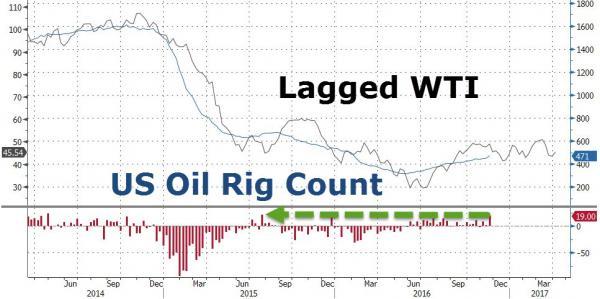 下图为近几年石油钻井平台数的趋势。图中可见,原油价格相比钻井平台数趋势,是滞后的。