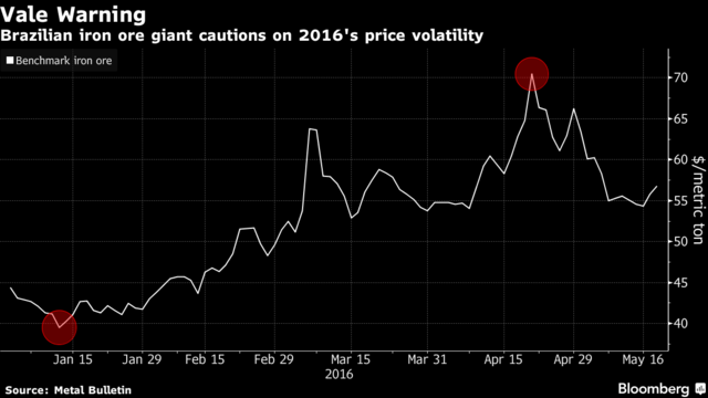 淡水河谷铁矿石市场营销和销售全球总监Claudio Alves向彭博表示:“我们将不得不为更艰难的时期做准备。不到一个月前,铁矿石的价格超过70美元。而三个月前,这一价格为38美元。这是一个很大的波动。”