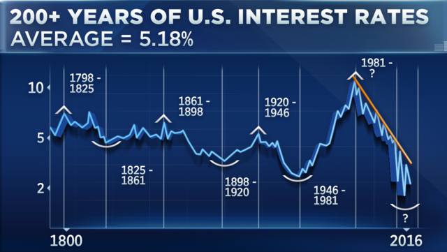回顾200年来美国利率走势,一位资深技术分析师认为,历史告诉我们,当前利率只会上行。