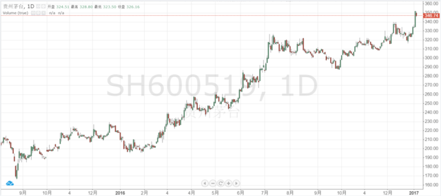 周四,贵州茅台股价收于351.91元,创下上市以来最高纪录,目前总市值超四千亿元。该股股价为A股市场最高,在过去一年中涨幅逾60%。