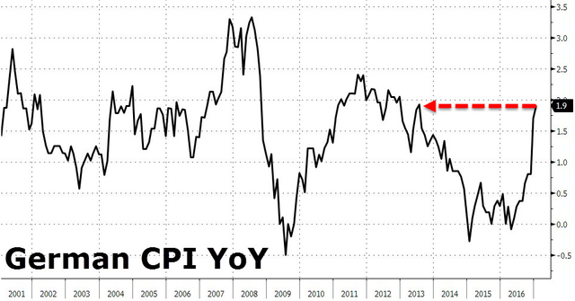 今年1月德国CPI同比增长1.9%,增速创三年半新高。经济学家预计未来德国通胀将继续走高,德国官方也将进一步对欧洲央行的宽松立场施压。欧洲央行或将妥协,甚至可能今夏就推出缩减QE的举措。