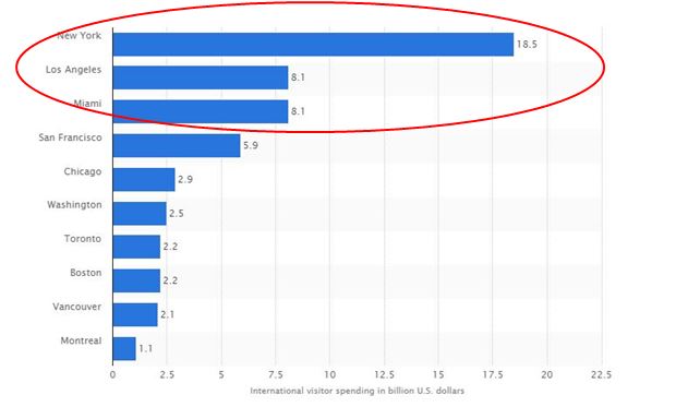 据Tourism Economics估计,特朗普总统强调“美国第一”的战略和外国人不友好的态度,或将令今年美国损失430万名国际旅客,其中纽约市、洛杉矶和迈阿密等旅游胜地遭遇的打击最大。