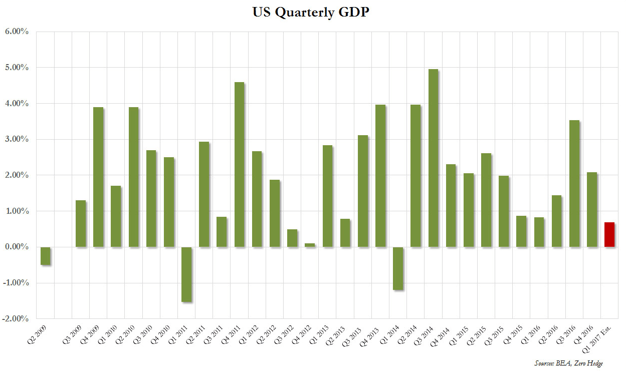 竞选期间,特朗普承诺会让美国GDP增速达到4%,上一次美国实际GDP增速达到这一水平还是在1997年。而上月公布的今年一季度美国GDP增速初值仅有0.7%,为三年来最低水平。