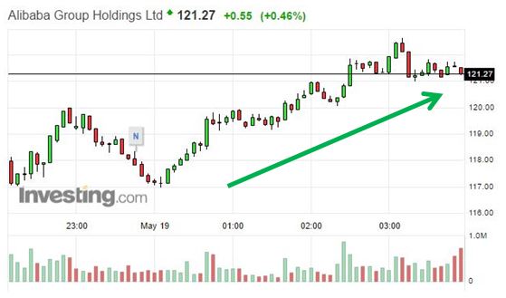 阿里巴巴集团今日公布2017财年第四财季财报及2017财年全年业绩。财报显示,阿里巴巴第四财季每股收益(EPS)不及预期,但营收创IPO以来最快增速。财报公布之初,盘前股价一度跌逾6%。美股开盘后跌幅收窄,午盘后转而上扬,最终收涨0.46%至121.27美元,接近5月16日站上的124.02美元史上新高。今年以来股价累涨了38.1%。