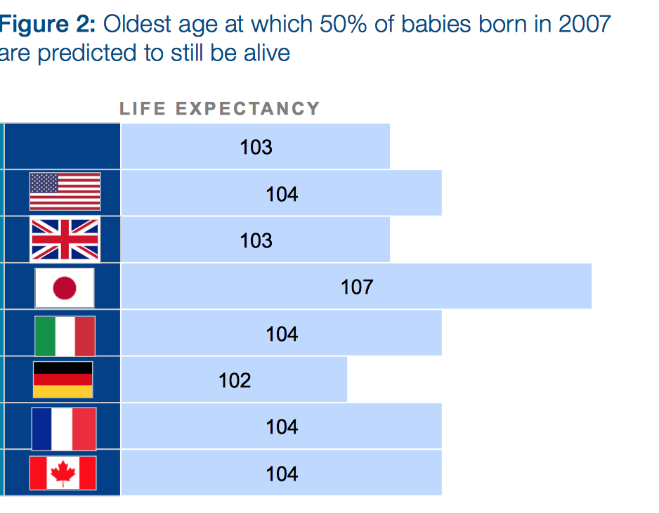 报告指出,养老金不足是因为全球老年人口的急剧增加,养老金发放扩大,预计2007年出生在美国、加拿大的人口中有一半平均最长可以活到104岁,而日本则是107岁。