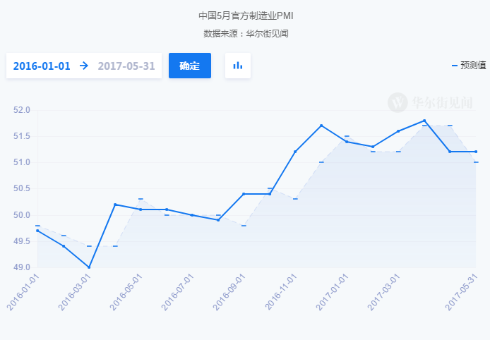 国家统计局今日发布数据显示,中国5月官方制造业PMI51.2,预期51.00,前值51.20。