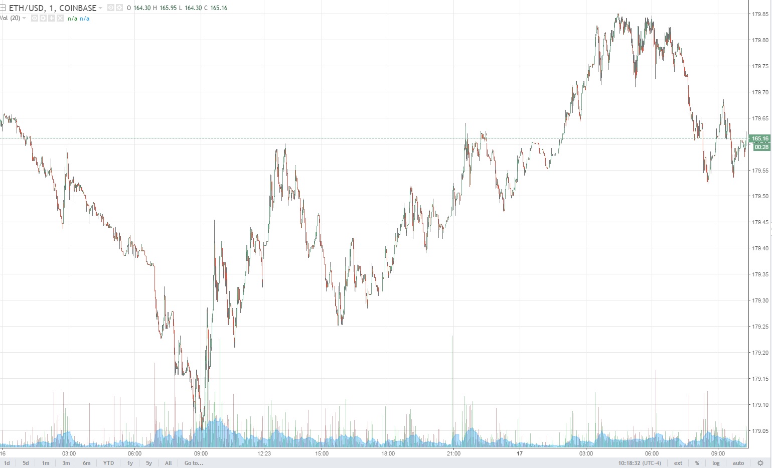 随着下月比特币硬分叉的危险迫近,数字货币波动陷入癫狂。以太币更是在创新低次日就暴涨将近40%。