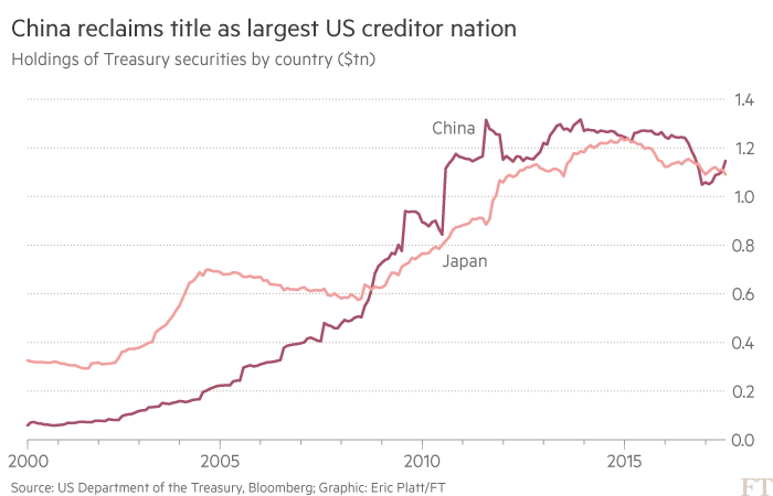 去年10月日本成为美国的最大债权国,尽管它持有的美国国债在逐渐减少。