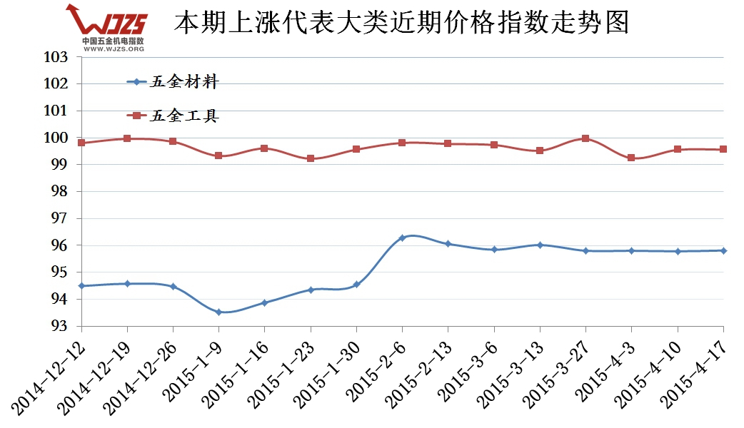 (一)涨幅方面:本周上涨大类仅有【五金材料】、【五金工具】两类,且两类涨幅均非常小,分别上涨0.03和0.01点基本同上周持平。