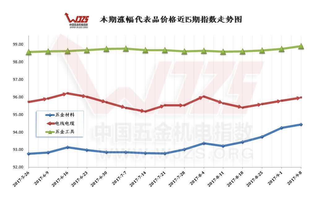 1、【五金材料】类指数上涨后点数为94.43点,涨幅为0.18点;二级分类【铝材】上涨1.31点至91.87点,【铜材】类上涨0.65点,【钢绳】上涨1.86点,旗下三级分类【不锈钢钢丝绳】上涨3.89点,涨幅较为显著,旗下的代表品“富艳Ф3”上涨6.67%。