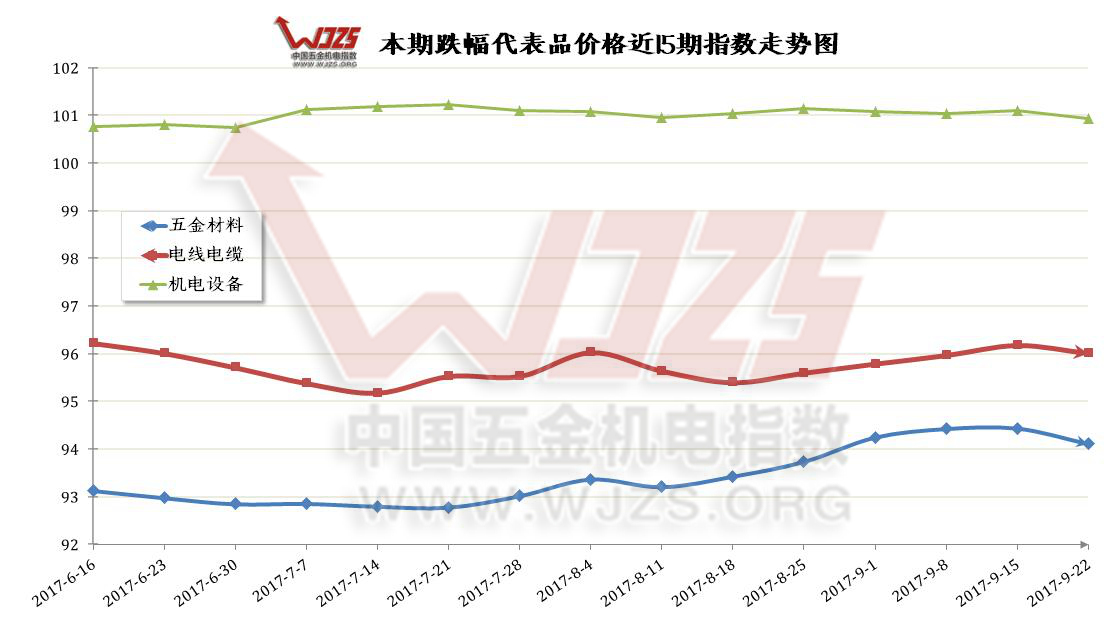 3、【机电设备】下跌0.16个百分点跌至100.94。二级分类【电动机】下跌0.13个百分点;【发电机/组】下跌0.19个百分点。三级分类【AC平行轴齿轮减速电机】下跌0.79个百分点,代表品“德火70YYJ”下跌2.78%,跌至225元。 |
