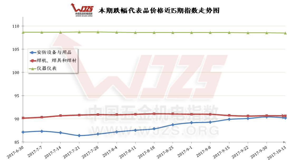 | 核心提示:本期价格总指数收于97.80点,与上期97.69点相比上涨0.11个百分点,同比去年同期96.48点上涨1.32个百分点。本期组成“中国?成都五金机电价格总指数”的12大类价格指数呈现“7涨3跌2平”的态势。本期涨幅前三位有:【机电设备】类指数上涨后点数为101.84点,涨幅为0.79点,【电工电气】类指数上涨0.23个百分点至96.33点,【五金材料】上涨0.19点,上涨后点数为94.36;本期跌幅前三位分别是【安防设备与用品】、【焊机、焊具和焊材】【仪器仪表】类,分别下跌0.22、0.05、0.05个百分点,跌至90.22、90.66、108.49点。 |