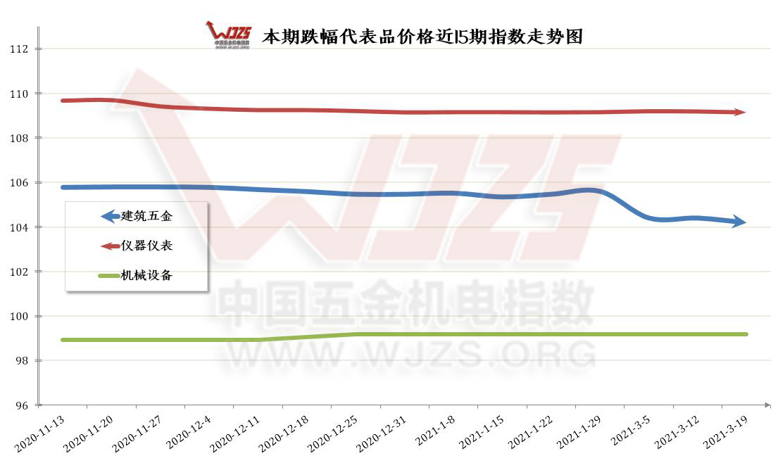 | 核心提示:本期价格指数收于102.83点上涨0.24点,同比上涨3.33%。12大类呈“7涨4跌1平”态势。本期涨幅前三类产品是:【安防设备与用品】【焊机、焊具和焊材】【五金工具】;本期下跌指数前三类产品,是【建筑五金】【仪器仪表】【机械设备】…… |