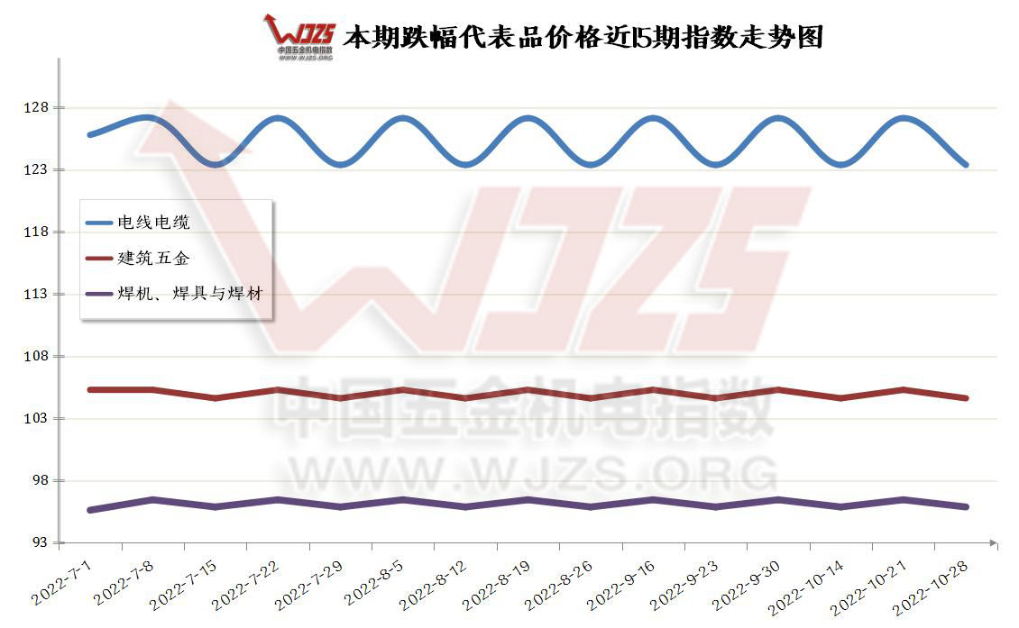 | 核心提示:本期价格指数收于108.09点,同比下跌0.34%。12大类呈“4涨6跌2平”态势。本期涨幅类产品是:【照明用具】【仪器仪表】【电工电气】;本期下跌指数类产品类,是【电线电缆】【建筑五金】【焊机、焊具与焊材】…… |