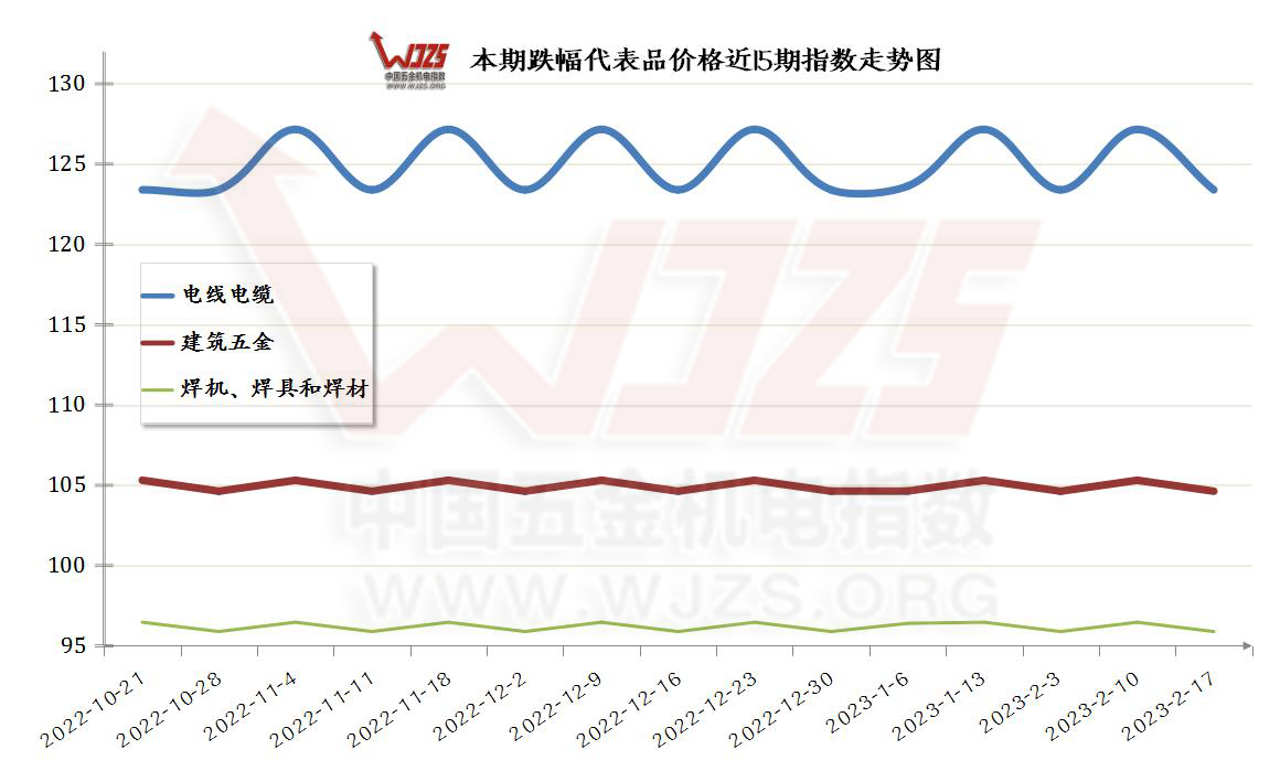 | 核心提示:本期价格指数收于108.13点,环比下跌0.30%,同比上涨0.02个百分点。12大类呈“5涨5跌2平”态势。本期涨幅类产品是:【照明用具】【五金材料】【仪器仪表】;本期下跌指数类产品类,是【电线电缆】【建筑五金】【焊机、焊具与焊材】…… |